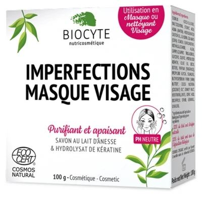 Biocyte Imperfections Face Mask Soap 100g is a 2 in 1 purifying and soothing treatment, specially formulated for skin with imperfections.