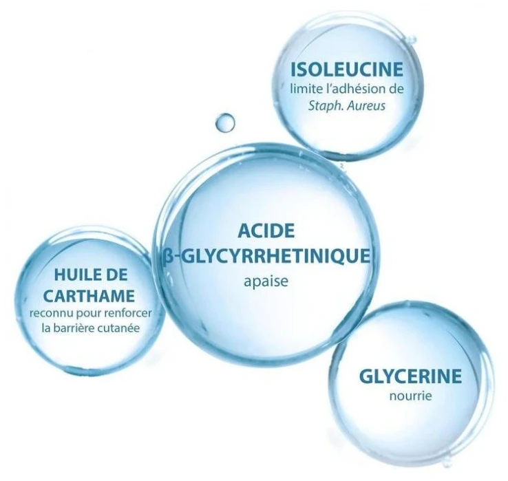 Its formula in Isoleucine limits the bacteria adhesion of S.Aureus. Its biodegradable* formula of high tolerance is elaborated in order to minimize the risks of allergies. With physiological pH, it is of a good ocular tolerance and on the external intimate areas.
