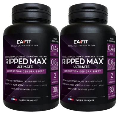 Eafit Ripped Max Ultimate 2 x 120 Tablets is a food supplement, a burner concentrate that guarantees an increased efficiency to eliminate fats thanks to green tea that acts directly on thermogenesis.