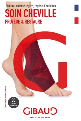 - The installation is carried out by putting on the ankle brace like a sock. The Gibaud logo must be located on the upper part of the ankle.