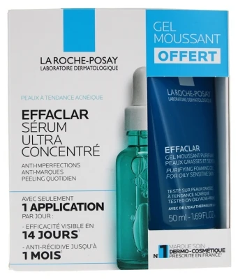 La Roche-Posay Effaclar Ultra Concentrated Serum 30ml + Purifying Foaming Gel 50ml Free is a duo of care products specifically designed for adult acne-prone skin.