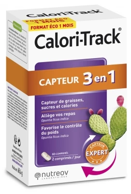 Nutreov Calori Track 60 Tablets is a food supplement that allows to capture a part of fats, sugars and calories coming from elimination.