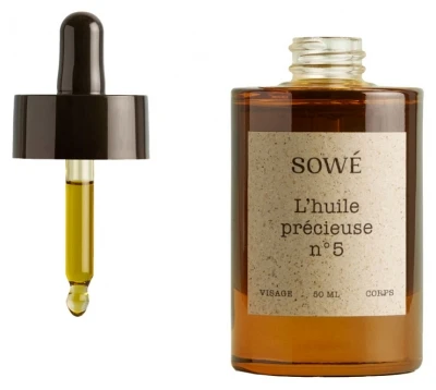 Sowé Precious Oil N°5 50 ml is a multi-use face and body oil, enriched with CBD and composed of 9 plant oils, naturally rich in vitamins and antioxidants. This combination provides hydration for mature skin with oily tendencies, for a toning, regenerating and nourishing effect. CBD is an antioxidant, moisturizer, protector, anti-inflammatory and sebum regulator.