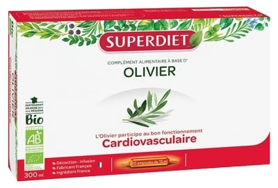 Superdiet Organic Olive Tree 20 Phials is a food supplement based on Olive Tree. It is recognised to contribute to the good functioning of cardiovascular system.